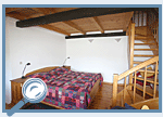 Die im Dachgeschoss gelegene Wohnung gliedert sich in einen Küchen-Eßbereich, einen Wohn- sowie einen Schlafbereich. Die Wohnung ist als Loft erstellt. Unterhalb einer Galerieebene ist ein Doppeltbett. Die zum Wohnbereich offene Galerie erreicht man über eine gut begehbare Treppe. Die 20 m² große Galerie bietet 2 -4 Schlafplätze. Die Wohnung ist mit einer Dusche ausgestattet. Die Küchenzeile ist mit einem 4-Platten-Elektroherd, Backofen, Kühlschrank, Kaffeemaschine und Toaster ausgestattet. Bei Bedarf kann ein Kinderreisebett zusätzlich aufgestellt werden.